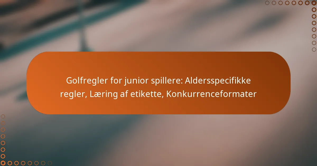 Golfregler for junior spillere: Aldersspecifikke regler, Læring af etikette, Konkurrenceformater